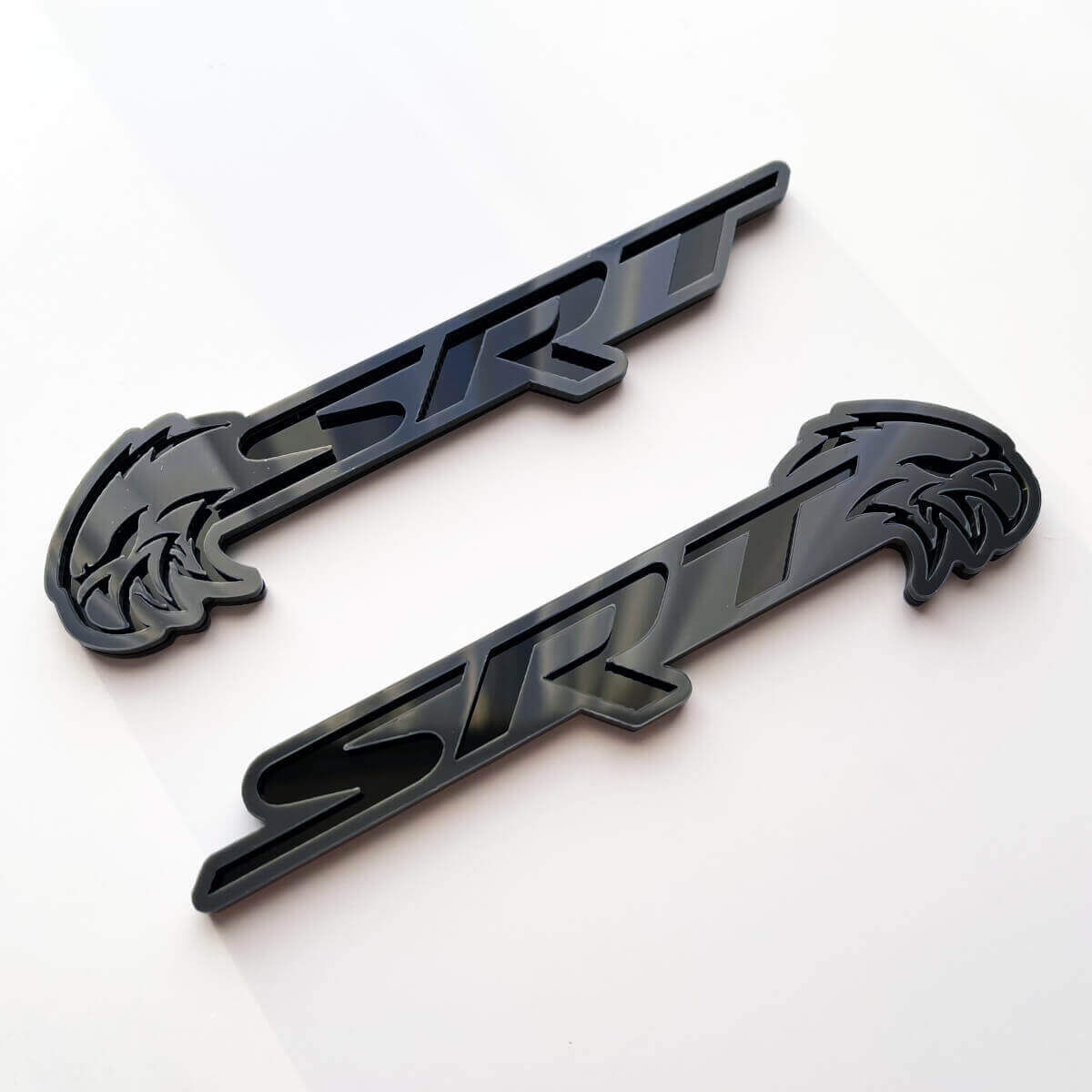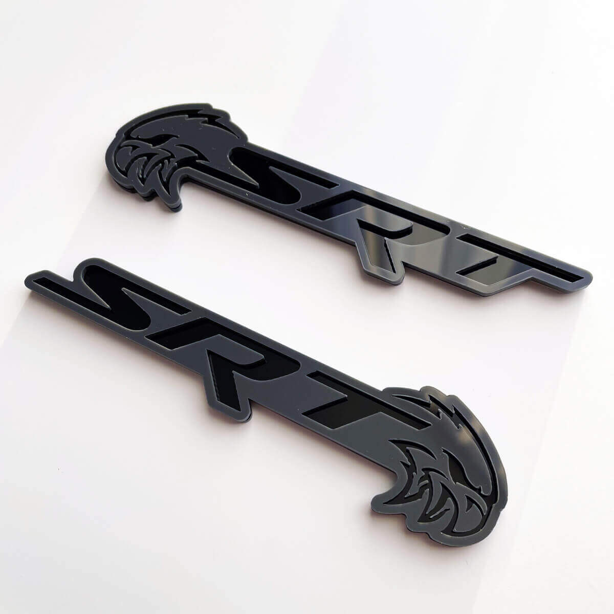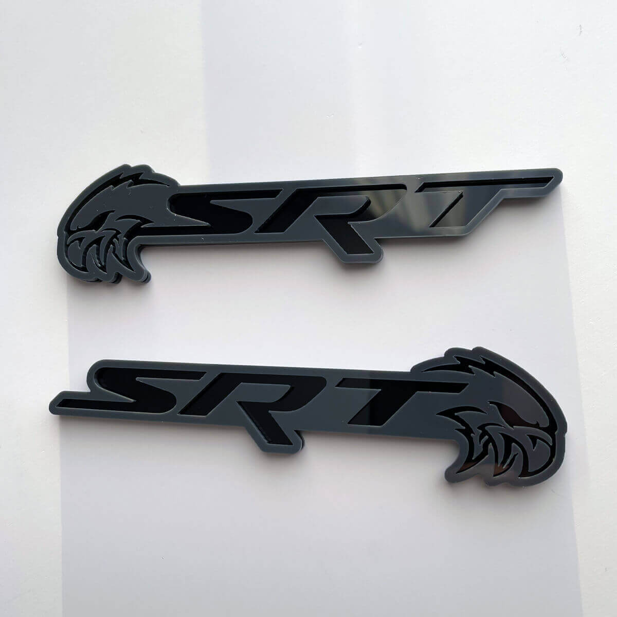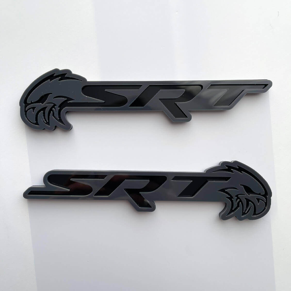 Enhance your vehicle's appearance with the Trackhawk 3D Badge Black vs Grey Fender Badges Emblem. This high-quality vinyl decal combines sleek black and grey tones to give your car a bold, custom look.
