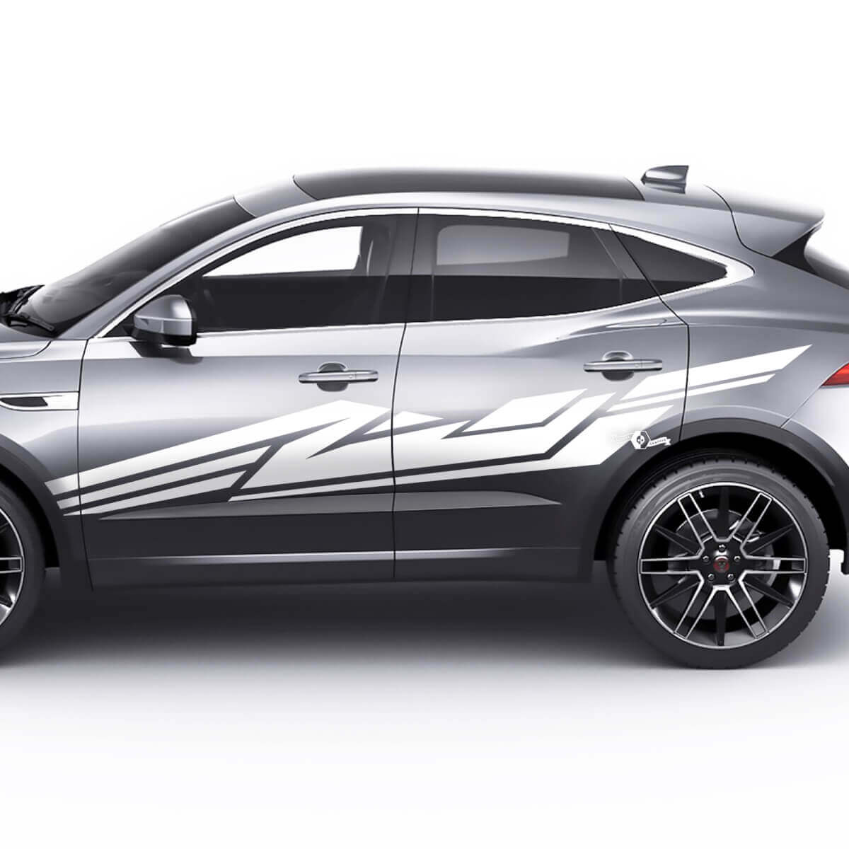 Transform the look of your Jaguar E-Pace with our Geometrical Style Side Door Graphics decal sticker. Crafted from high-quality vinyl, this decal provides a sharp, modern aesthetic that highlights your vehicle’s unique design.