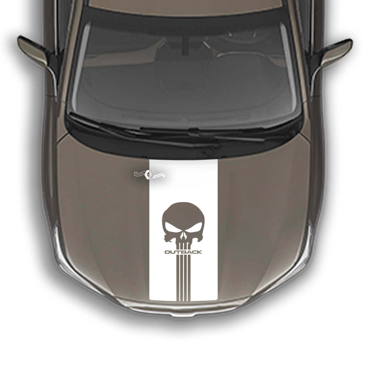 Enhance your Subaru Outback’s style with the Bonnet Stripe Punisher Vinyl Decal Sticker. This sleek, high-quality decal adds a bold and aggressive touch to your vehicle, making it stand out on the road.