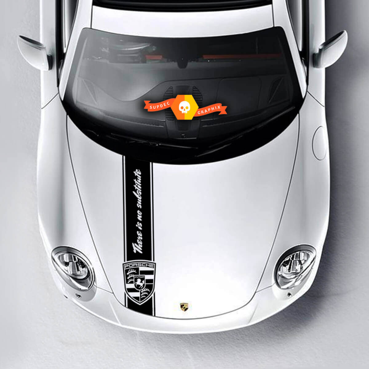 Upgrade your vehicle's style with the Porsche Logo Spider Hood Stripes Kit Decal Sticker. Crafted from high-quality vinyl, this decal kit adds a bold and sporty look to your car's bonnet, perfectly capturing the iconic Porsche spider emblem with sleek stripes.