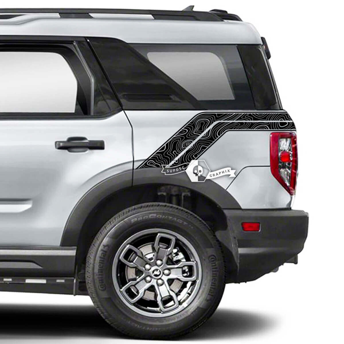Enhance your Ford Bronco's style with these 2x topographic map fender side decals. Crafted from high-quality vinyl, these stickers offer durability and a distinctive rugged look that off-road enthusiasts will love.