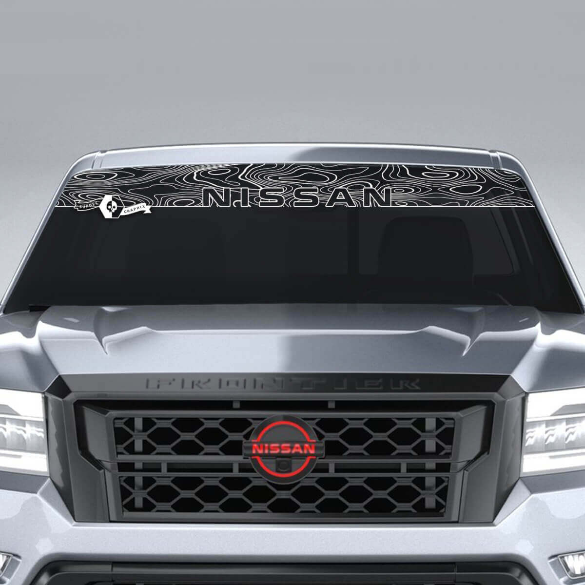 Enhance your Nissan Frontier’s look with our Windshield Topographic Map Vinyl Stickers. Designed specifically to fit truck windshields, these decals add a unique, adventurous touch to your vehicle.
