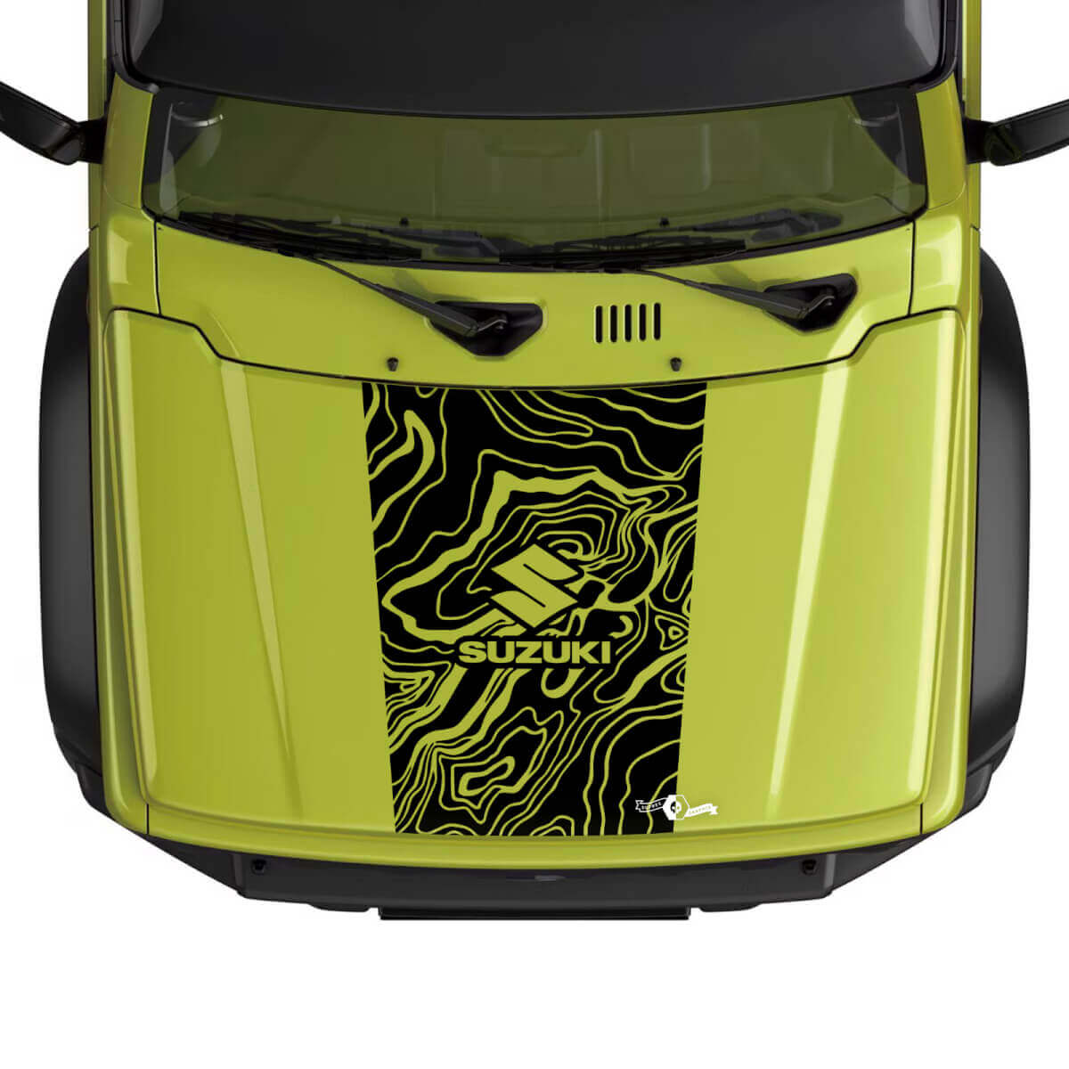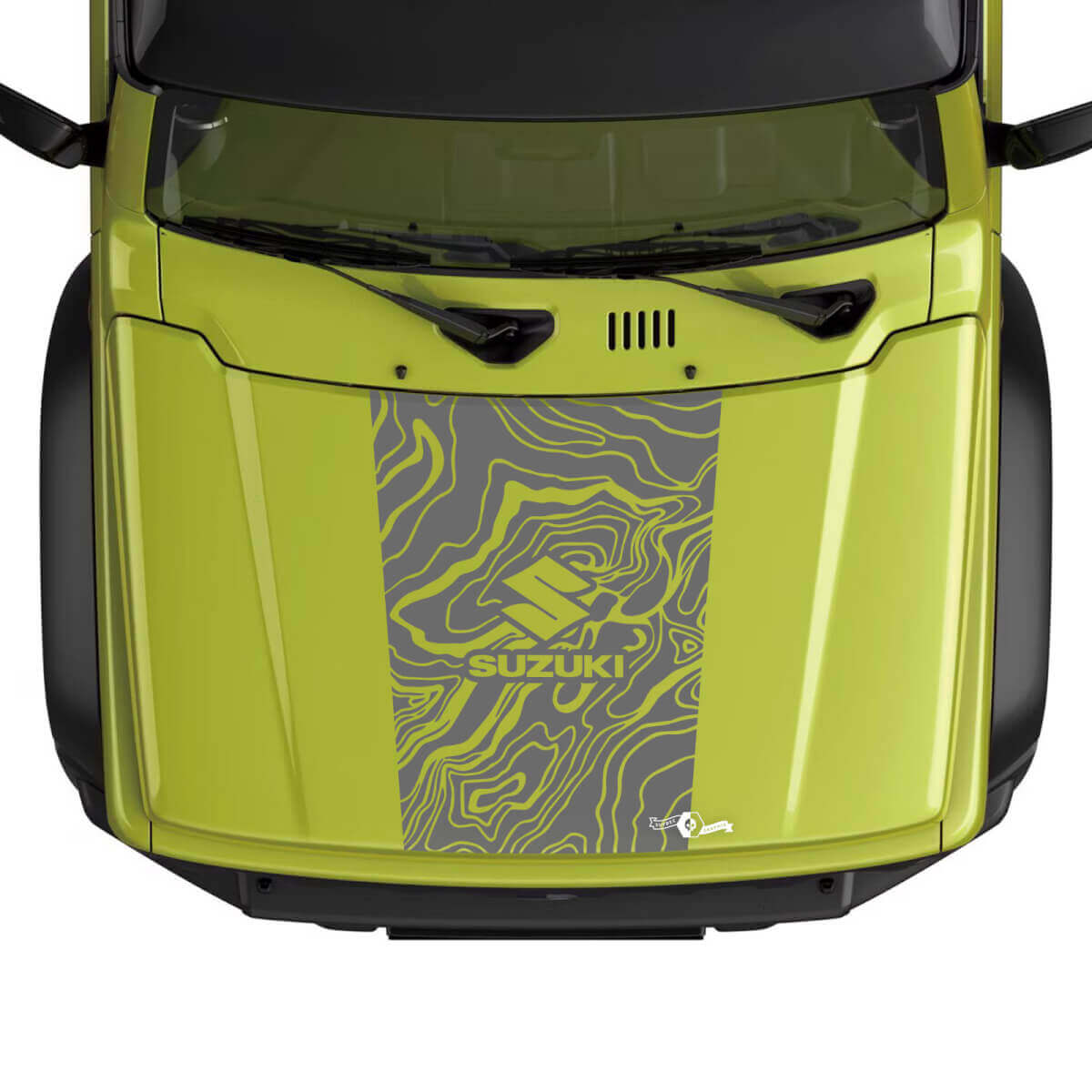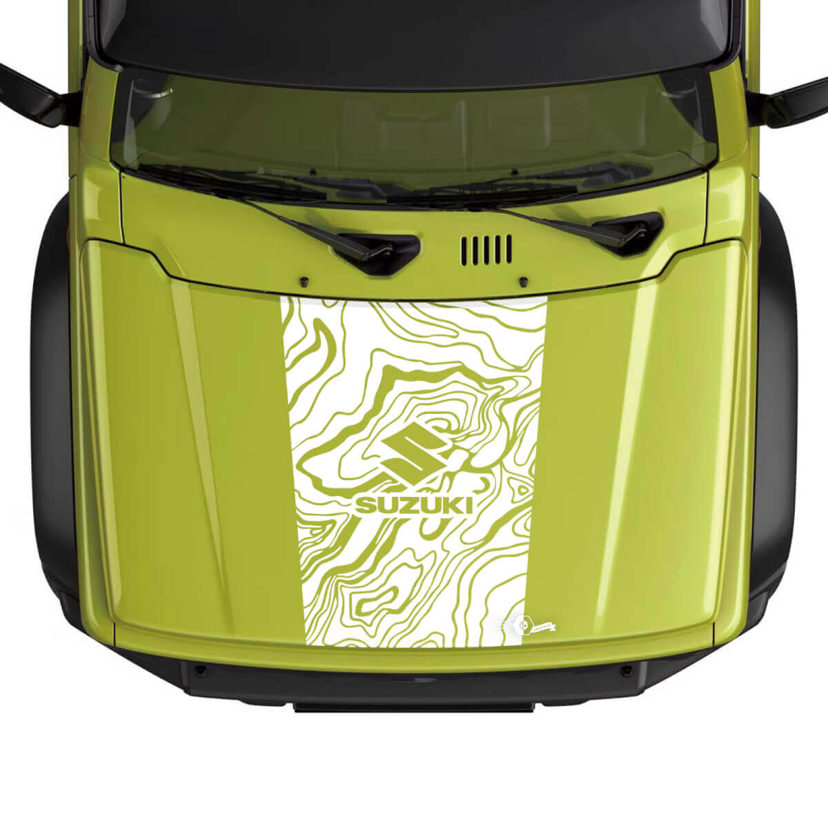 Enhance your Suzuki JIMNY's look with our Bonnet Topographic Map Logo decal sticker. Made from durable vinyl, this high-quality graphic adds a distinctive, adventurous touch to your vehicle's bonnet.