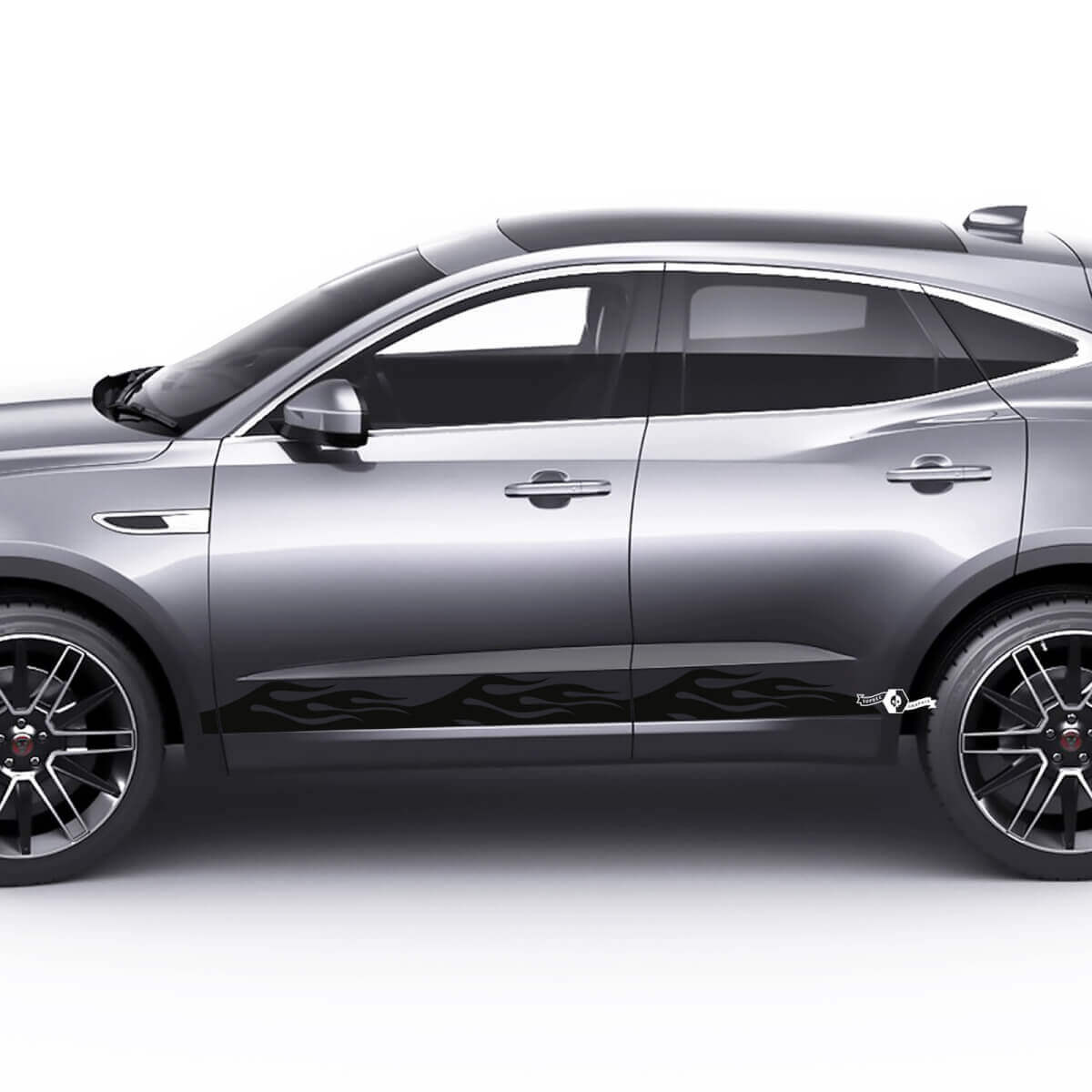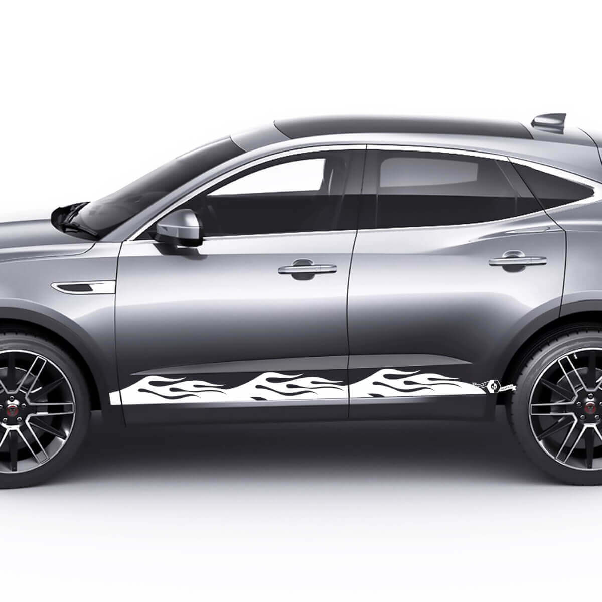 Enhance your Jaguar E-Pace with our Side Flame Doors Graphics decal, designed to add a unique and sporty look to your vehicle.