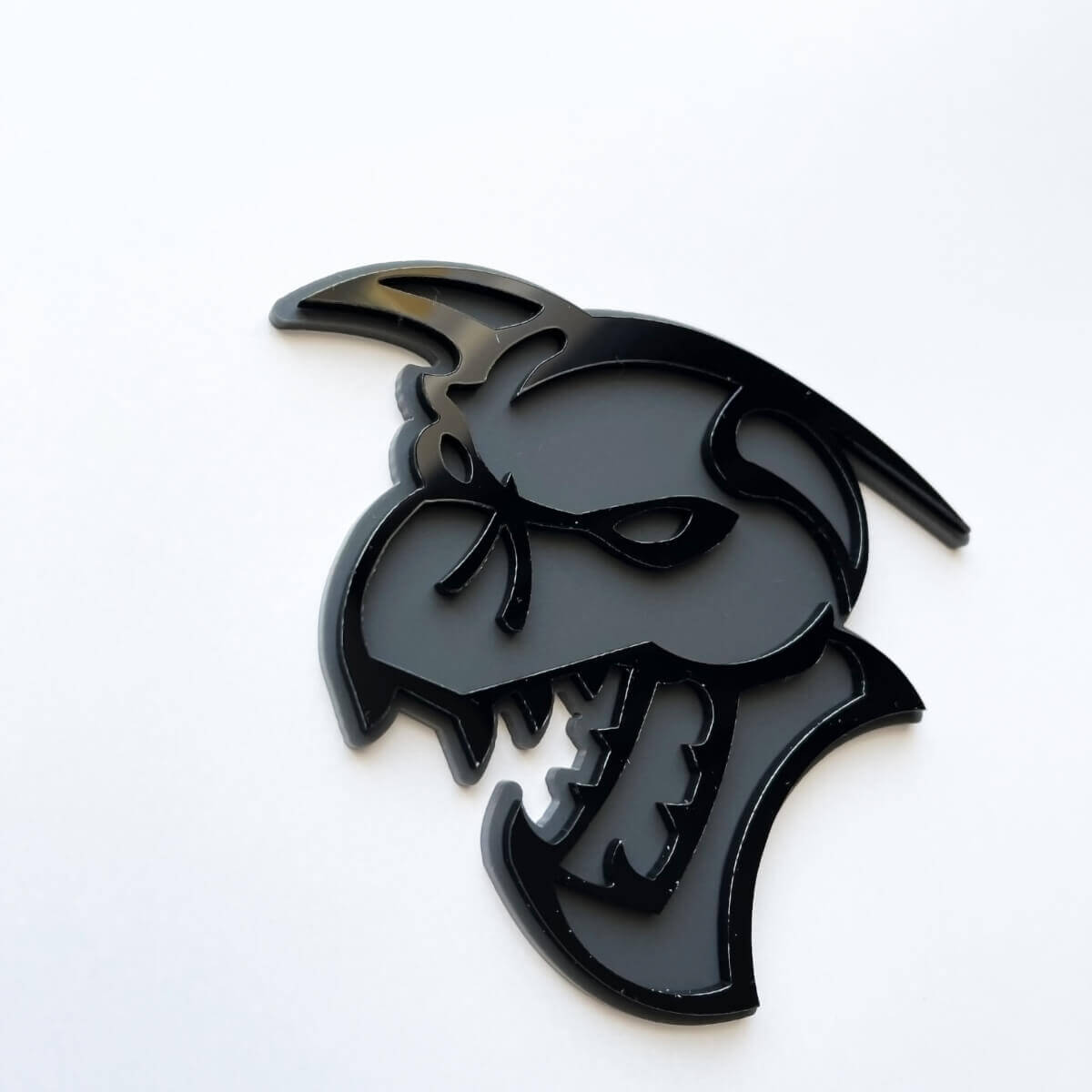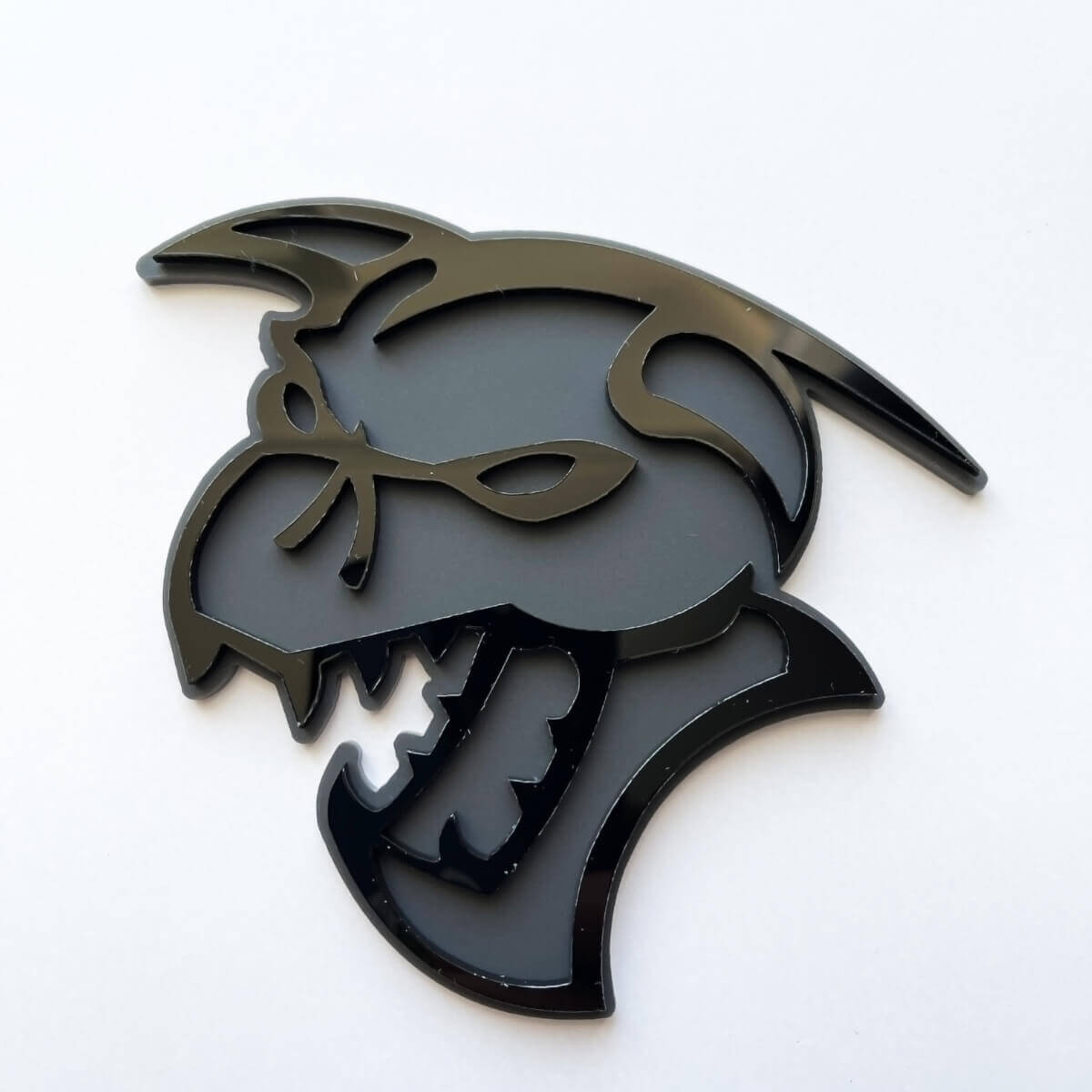 Enhance your vehicle's style with the Demoncat Demon 3D Badge in a striking black vs grey finish. This premium fender emblem adds a bold, dynamic touch to any car, enhancing its appearance with a sleek, modern design.