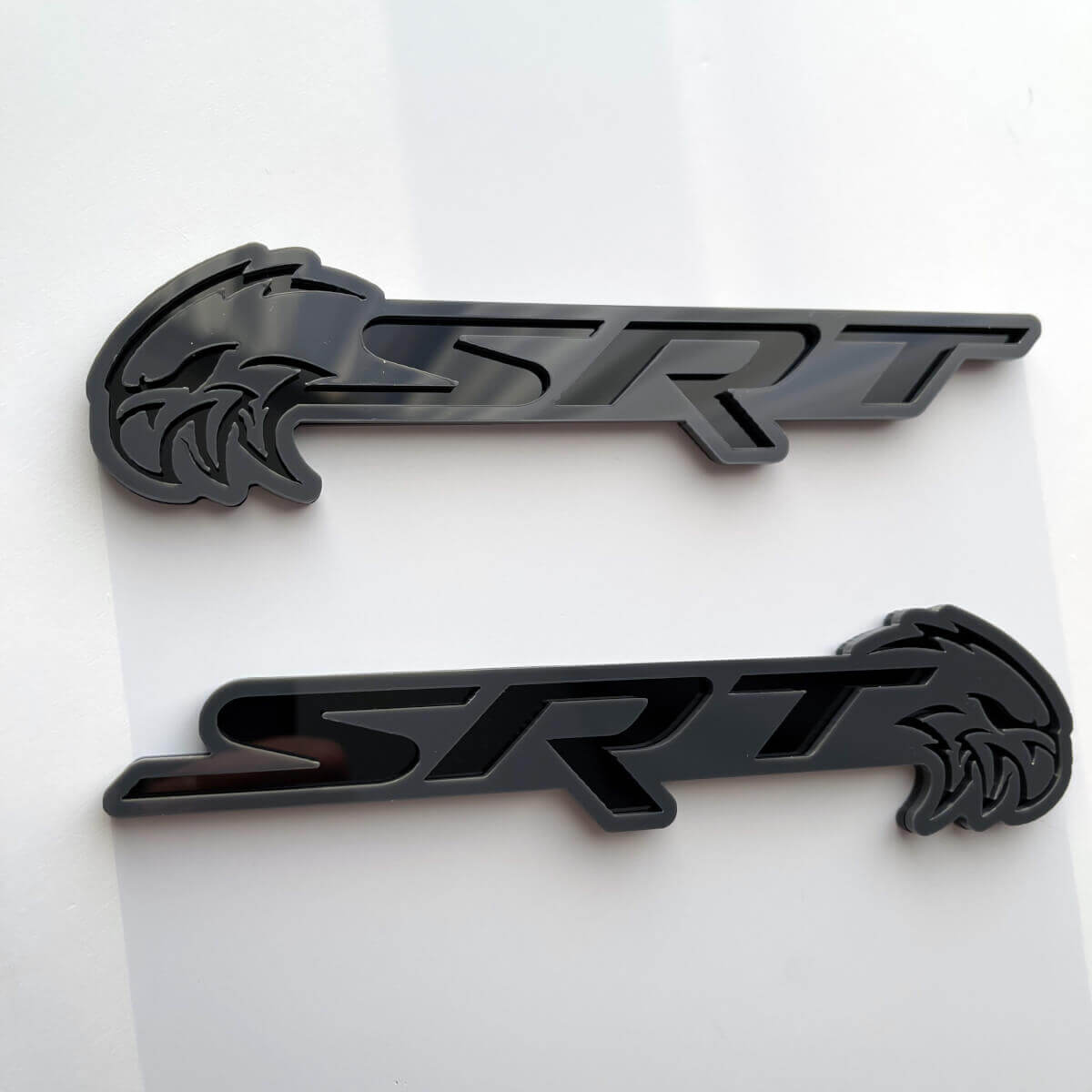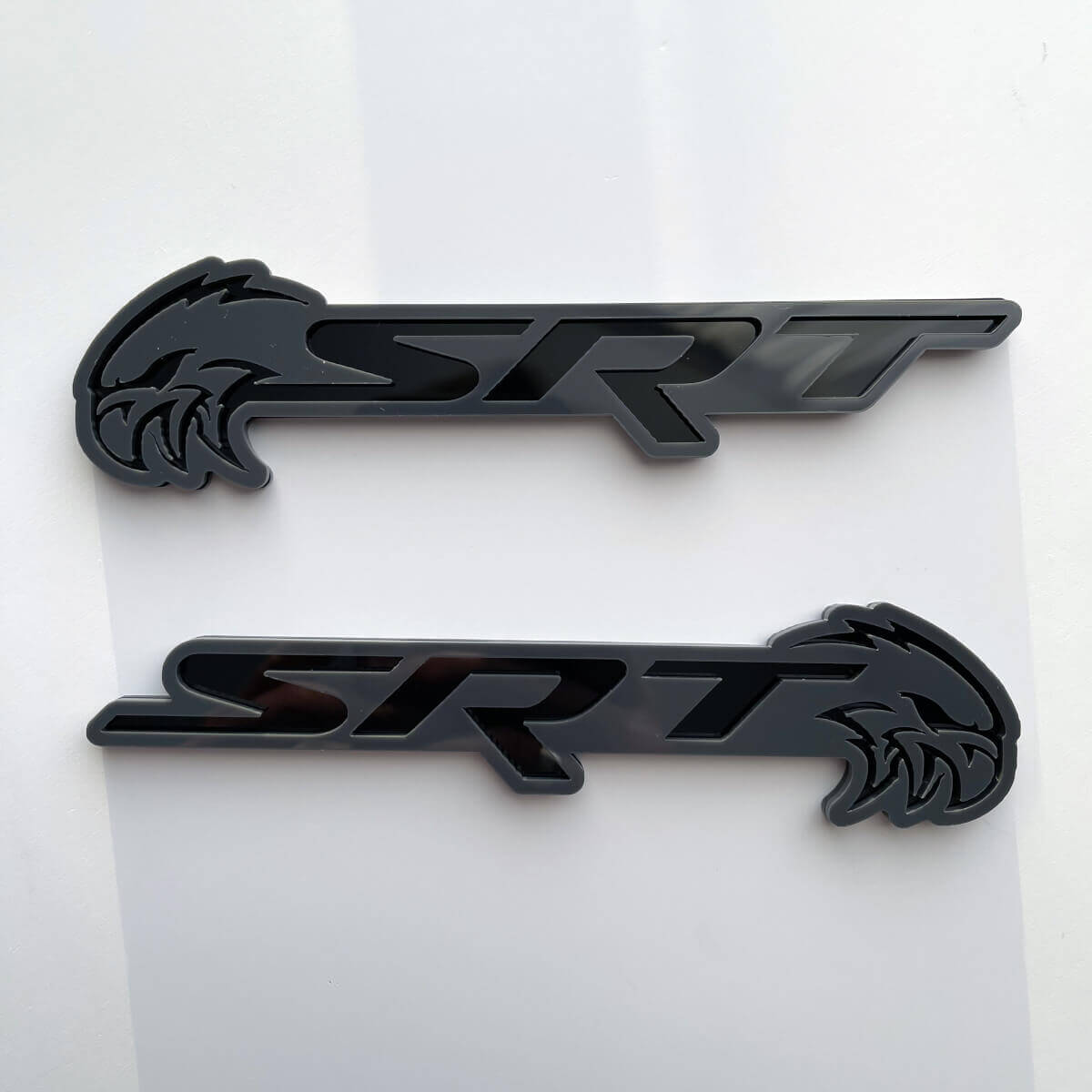 Enhance your vehicle's appearance with the Trackhawk 3D Badge Black vs Grey Fender Badges Emblem. This high-quality vinyl decal combines sleek black and grey tones to give your car a bold, custom look.