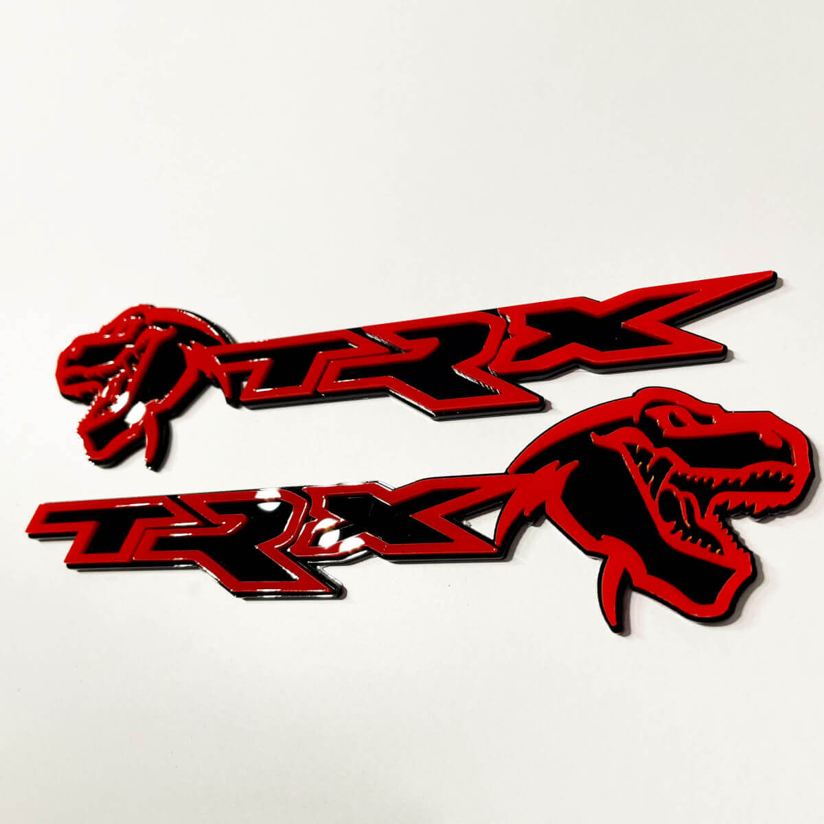 Enhance your vehicle's look with the TRX 3D Black vs Red Fender Badge Emblem. Crafted for durability and style, this bold emblem adds a striking contrast to your car's guard, making it stand out on the road.