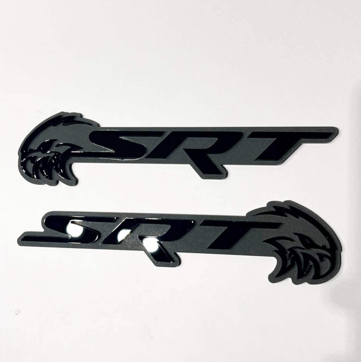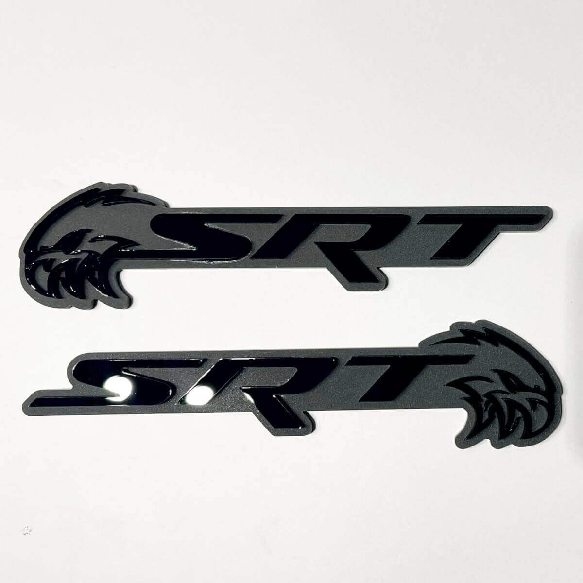 Upgrade your car’s look with the Trackhawk 3D Badge Black vs Grey Fender Badges Emblem 2 set, designed to add a sleek and aggressive touch to your vehicle’s exterior.