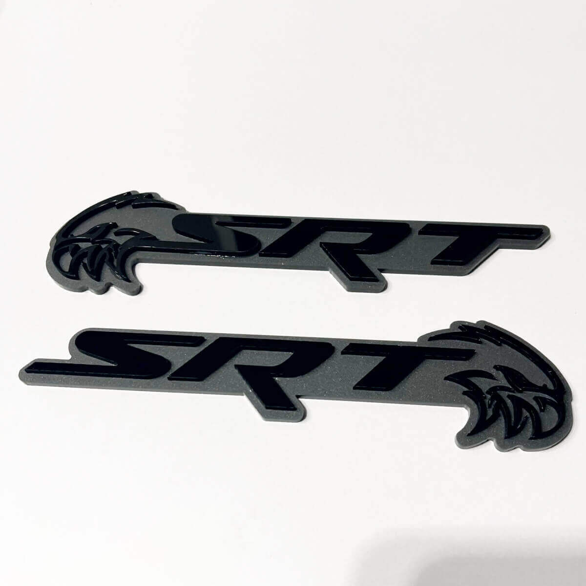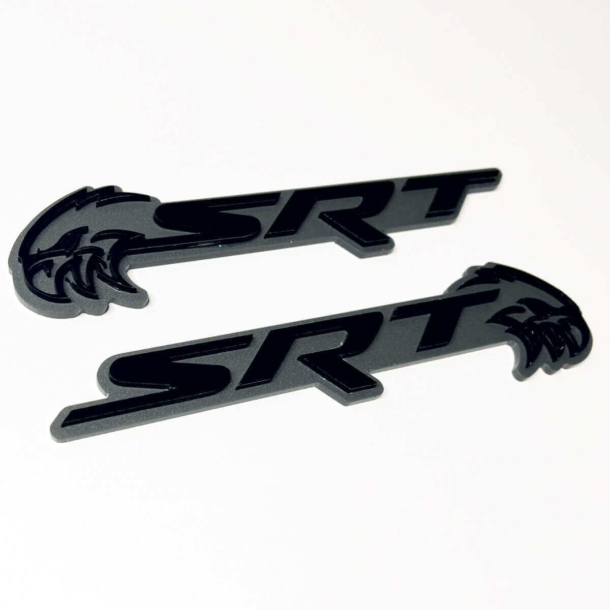 Crafted from premium vinyl, these badges offer a striking black and grey contrast that enhances your car's style while providing a durable, weather-resistant finish.