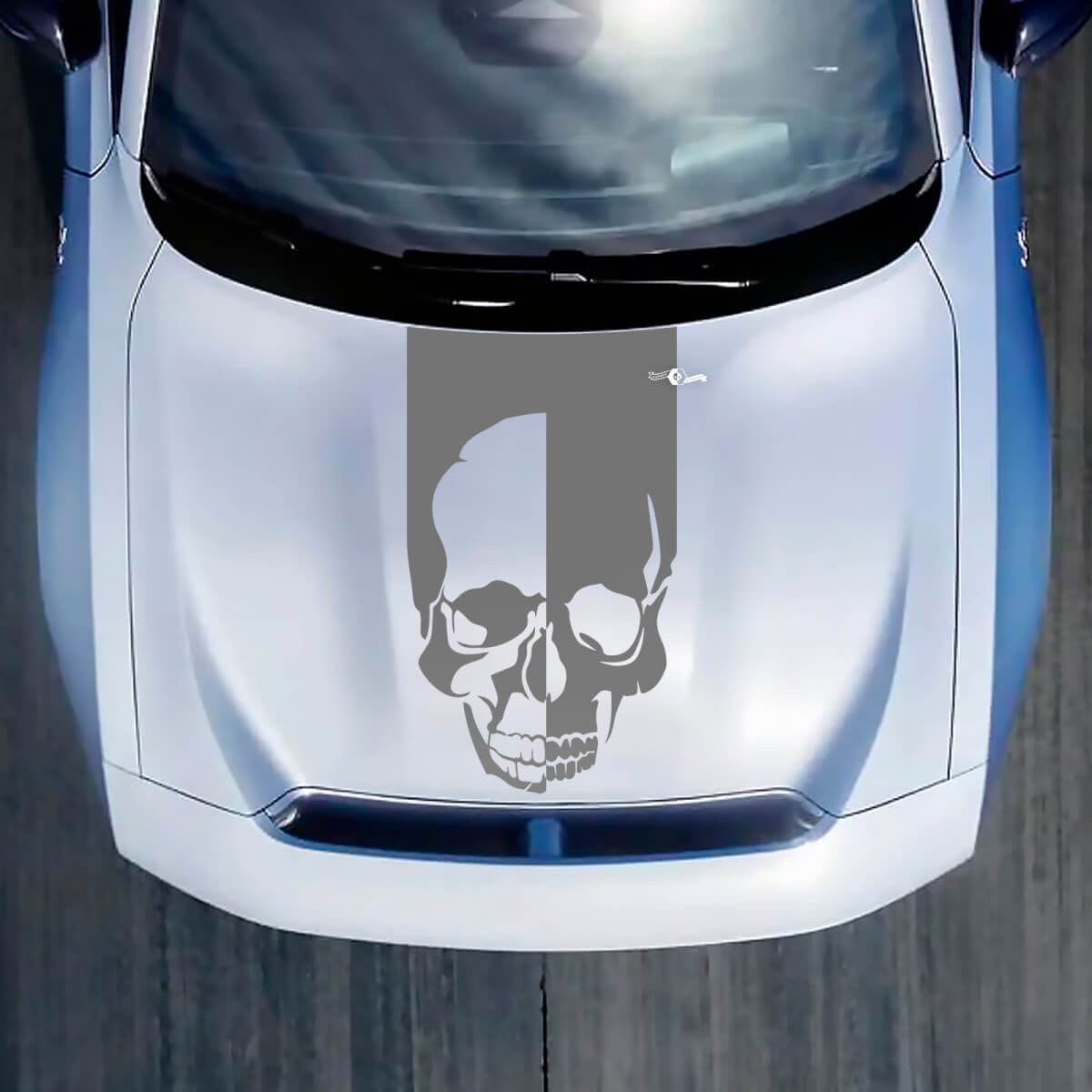 Enhance your Dodge Charger Electric with the Bonnet Skull Stripe Decal Sticker. This high-quality vinyl decal adds a bold, edgy look to your vehicle's bonnet, perfect for those who want to stand out.