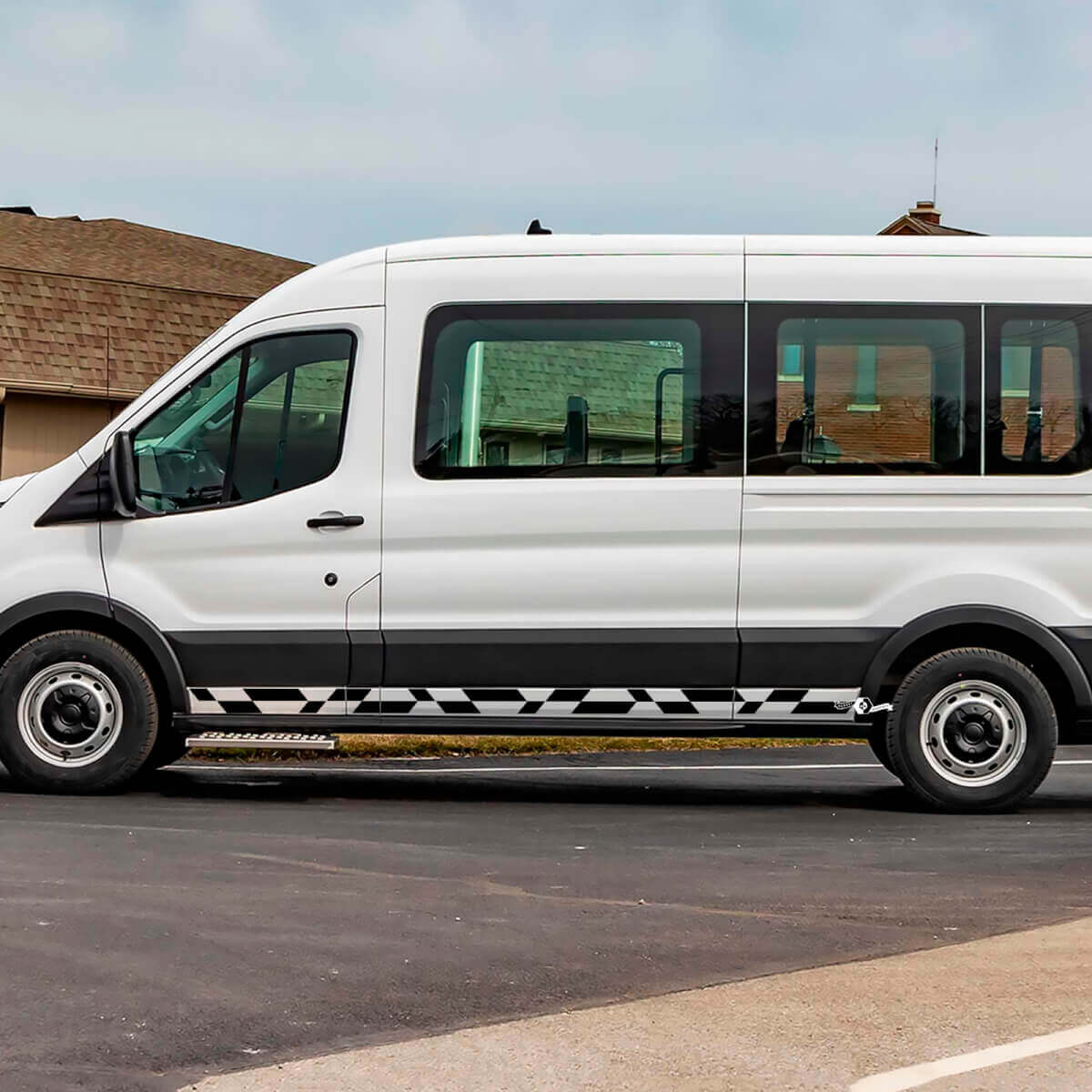 Enhance your Ford Transit’s appearance with our vinyl side checkered stripes decals. Designed for easy application and lasting durability, these decals add a sporty and stylish look to your vehicle.