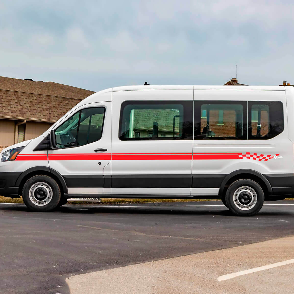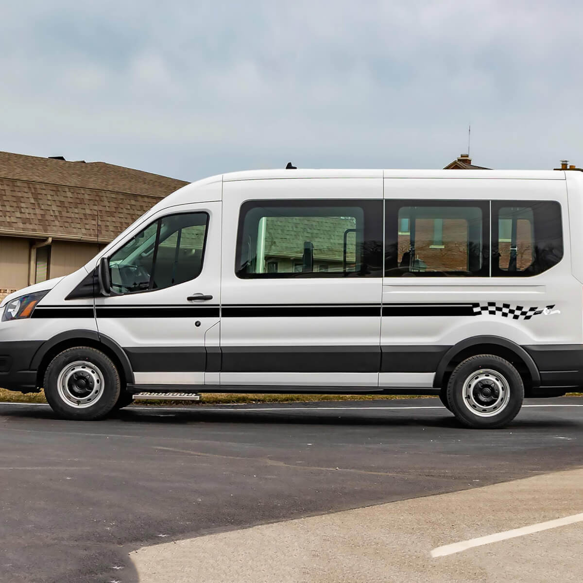Enhance your Ford Transit’s style with our Checkered Vinyl Side Stripes Decals. Designed for durability and easy application, these decals add a sporty, dynamic look to your vehicle’s sides.