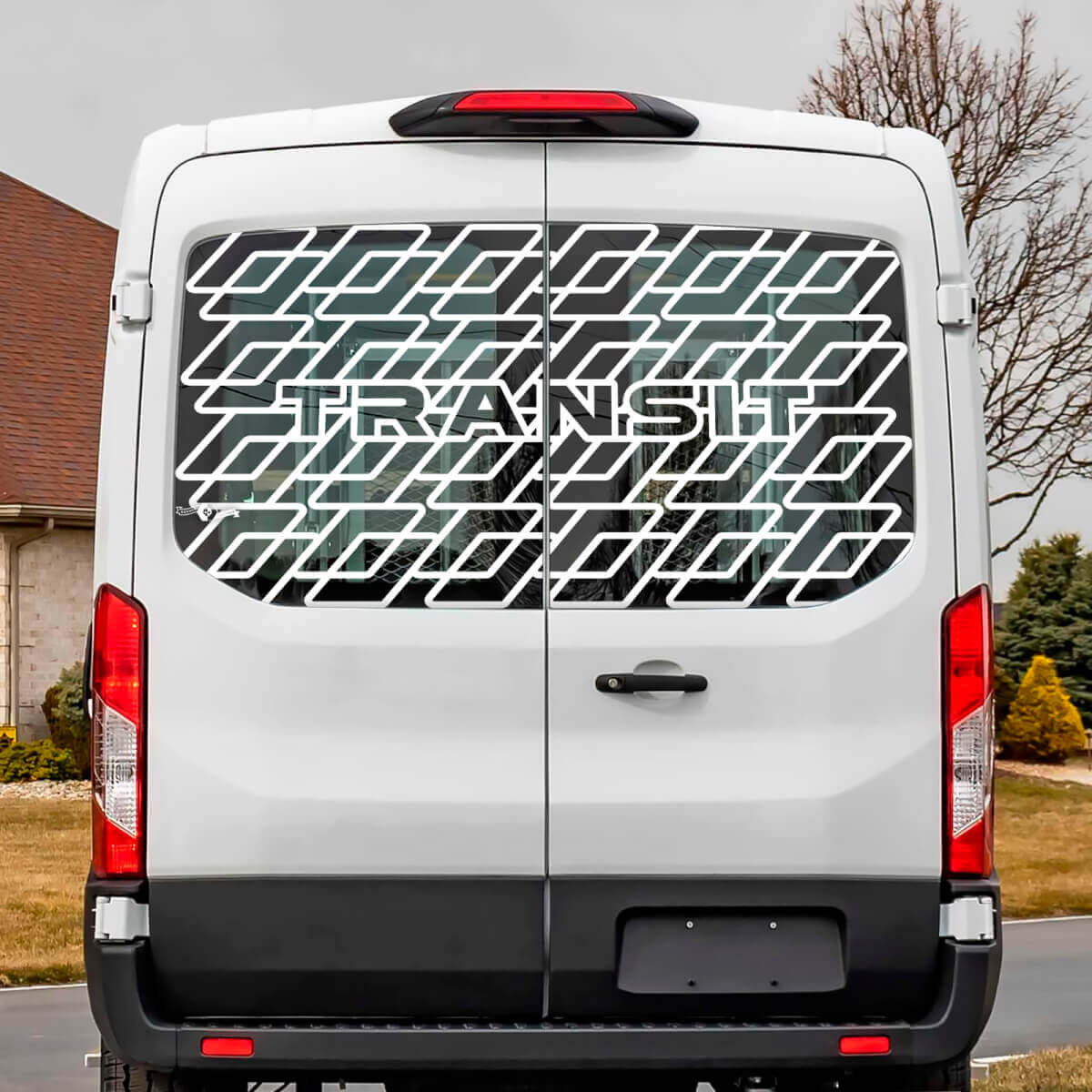 Enhance the rear profile of your Ford Transit with this Rear Window Vinyl Decal. Designed to bring a sleek and custom look, this decal fits the back window of Transit vans perfectly, adding a subtle yet bold accent to your commercial or personal vehicle.