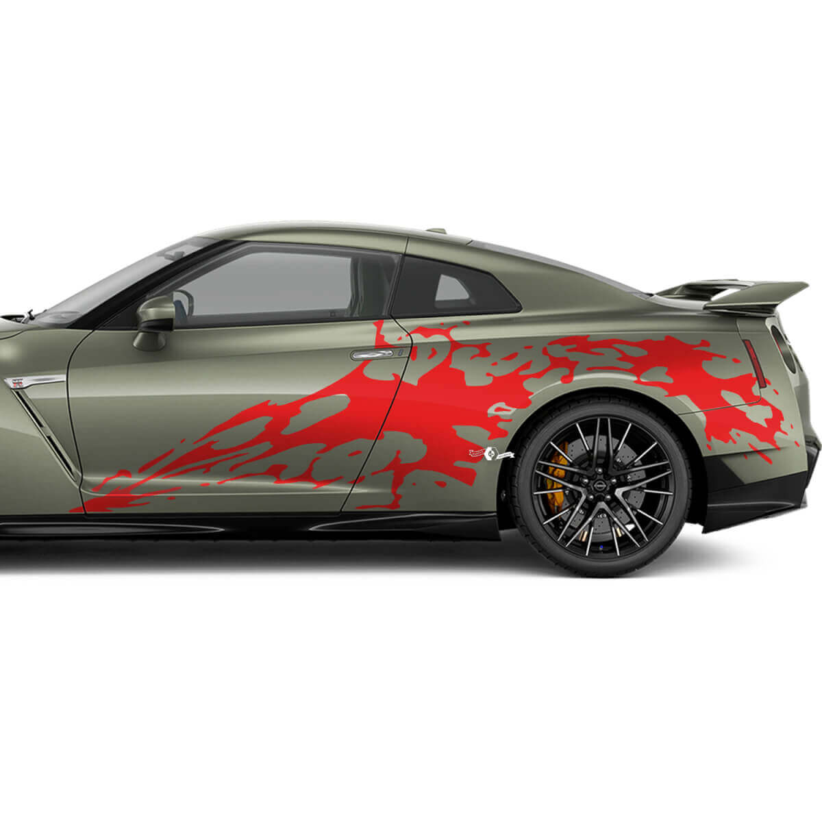 Upgrade your Nissan GT-R with the Sides Blood Graphics Stripes Decal Kit, designed to give your vehicle a bold, aggressive look. Crafted from high-quality vinyl, these decals are weather-resistant and easy to apply, ensuring a lasting finish that stands out on the road.