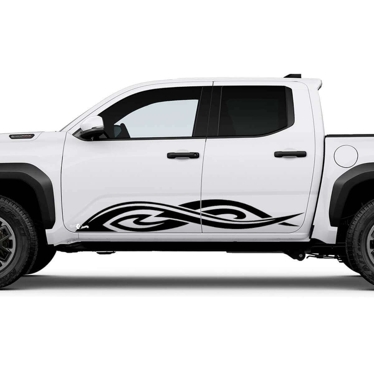 Make your Tacoma stand out from the crowd with these eye-catching tribal side rocker panel decals. The intricate tribal design adds a touch of personality to your vehicle and sets it apart from the rest. Whether you're cruising around town or hitting the trails, these decals are sure to make a statement.