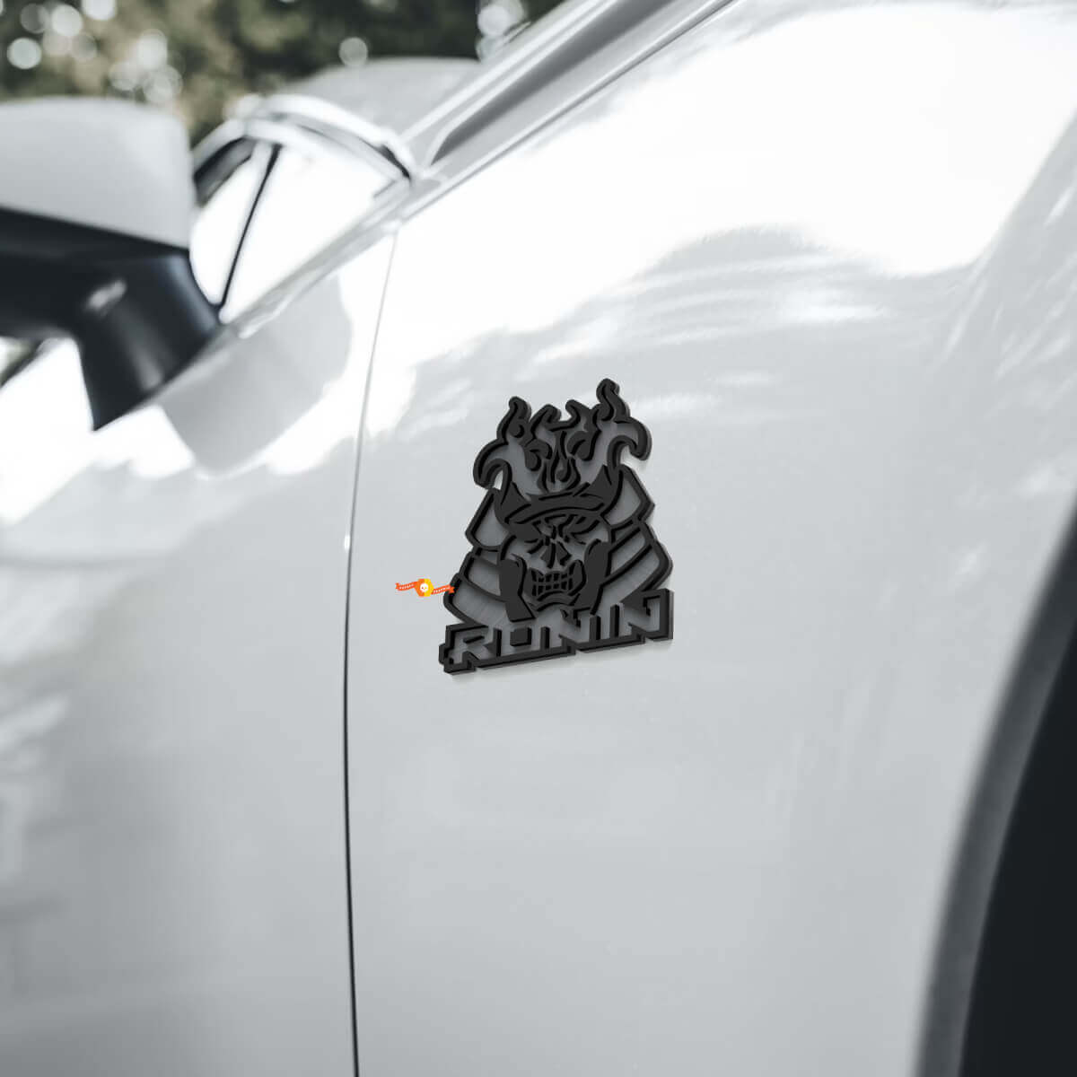 Upgrade your vehicle's style with our Skull Samurai Ronin Fender Badges Tailgate Emblem 3D Badge. This striking 3D emblem combines bold design elements, featuring a fierce skull samurai fused with a ronin terminator motif, perfect for those who want to make a powerful statement on their car or truck.
