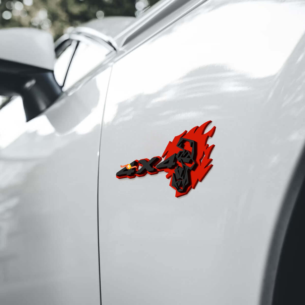 Upgrade your 4x4 ute or SUV with our striking Flame Skull 4x4 Fender Badges Tailgate Emblem. This 3D badge combines bold design with durable craftsmanship, making it the perfect statement piece for off-road enthusiasts and ute lovers alike.