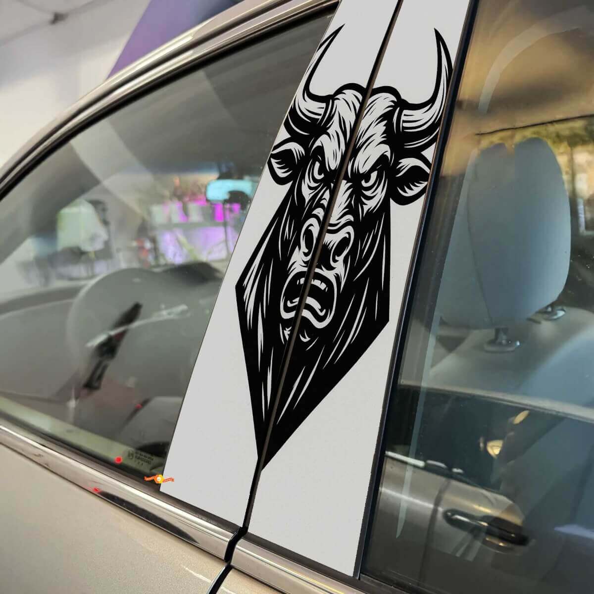 Upgrade your vehicle’s appearance effortlessly with the Angry Bull Head Pillar Doors Vinyl Decal Sticker. Order now and give your car the fierce personality it deserves!
