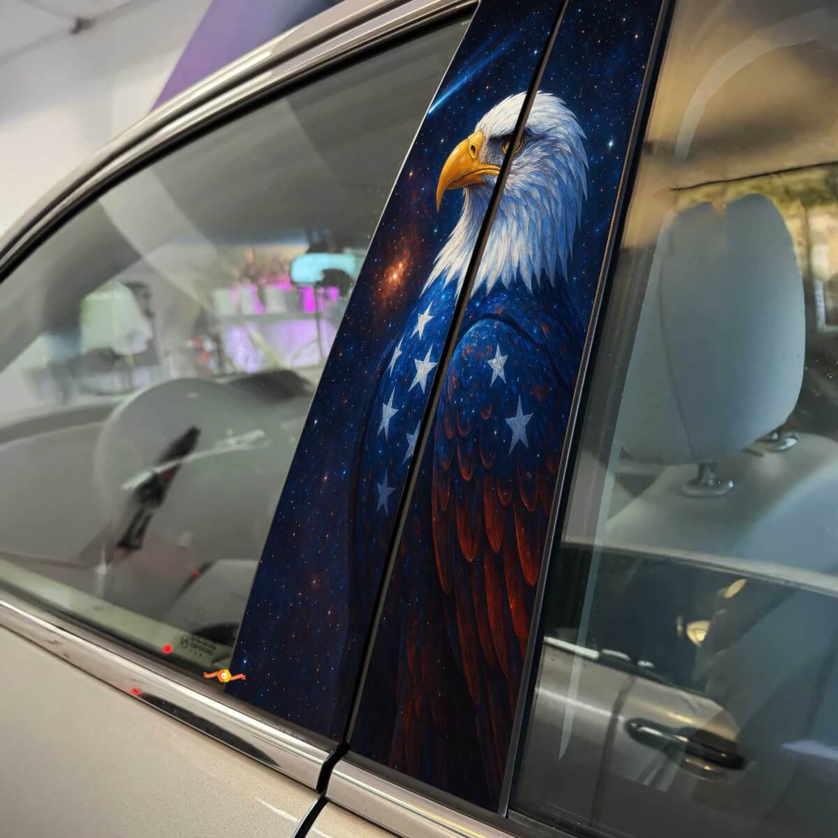 Crafted from high-quality vinyl, our decal is weather-resistant and built to last through rain, sun, and car washes. It’s easy to apply, removing the hassle from upgrading your car’s appearance. Ideal for trucks, SUVs, and cars, the Bald Eagle USA Style Pillar Doors Vinyl Decal adds a patriotic flair that stands out on the road.