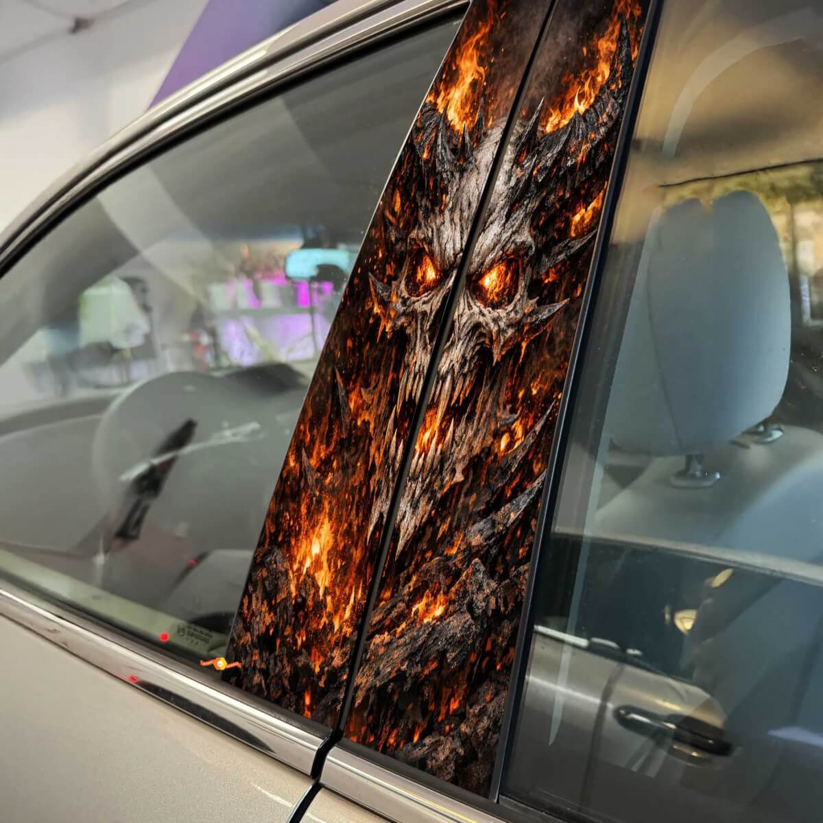 Transform your ride with our Burning Demon Skull Pillar Doors Vinyl Decal Sticker, designed to add a bold and fierce look to your car. Crafted with high-quality vinyl, this decal is perfect for enhancing the appearance of your car’s pillar doors, giving your vehicle a unique and edgy style that stands out on the road.