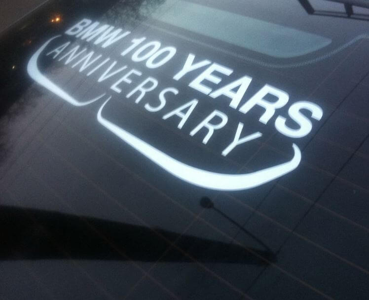 The material of our high-quality BMW car window sticker guarantees durability and environmental resistance, while maintaining colour brightness and image clarity. Celebrate 100 years of BMW splendour with this unique MPower Anniversary window sticker made of graphic vinyl for bmw.
