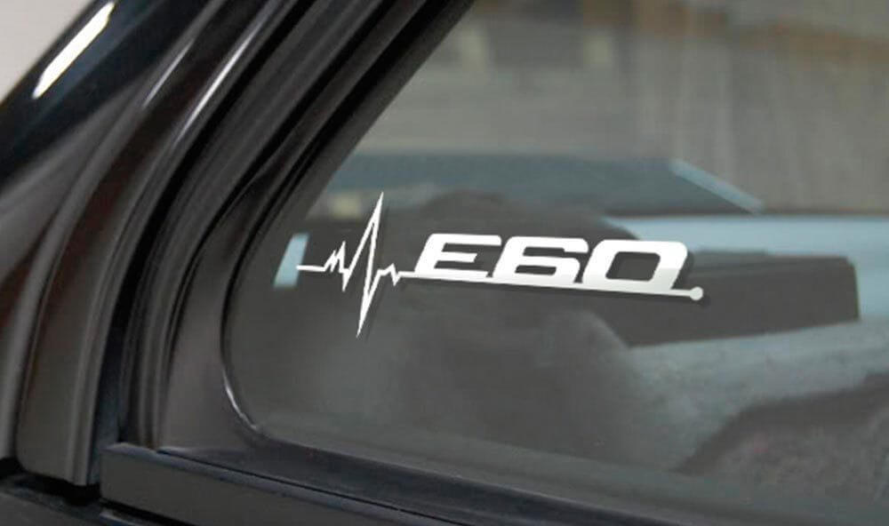 A unique graphic sticker on the BMW E60 window, a unique style with our vinyl stickers and BMW-style stickers on the windows in a graphic style with a cardiogram of the pulse and the name of the model!