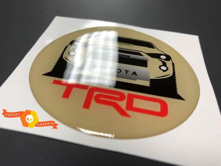 Enhance your Toyota 4Runner with the TRD Domed Badge Emblem Resin Decal Sticker, a high-quality accessory designed to add style and distinction to your vehicle.