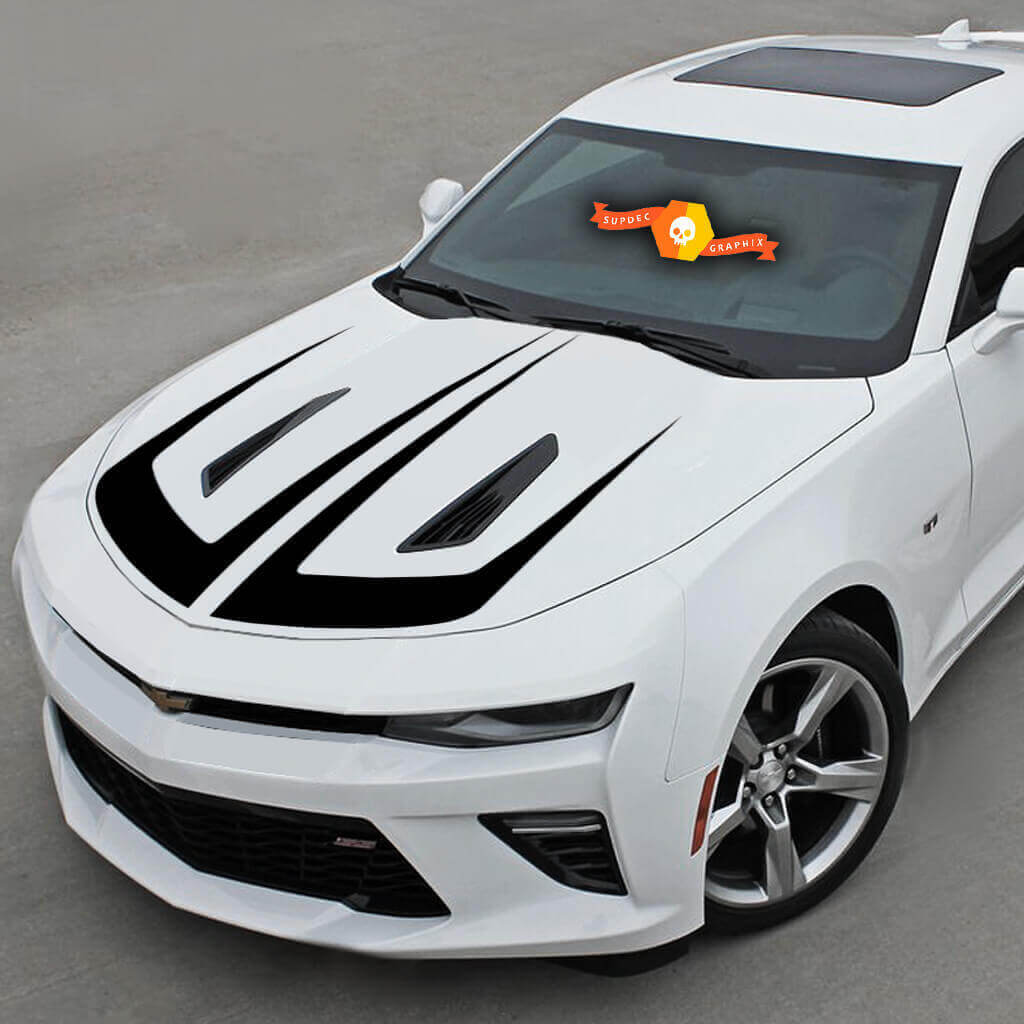 The graphic scalloped bonnet sticker of the Chevrolet Camaro is easily removable, allowing you to change the design without damaging the body. Transform your Camaro with our stickers and make it really bright!