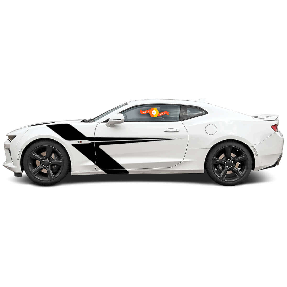 If you love speed and want to give your Chevrolet Camaro a unique and daring look, then this sticker is the perfect choice. A decorative vinyl sticker, made in the form of a racing stripe with a sharp tip, is mounted on the front guard and captures most of the door, creating a dynamic and expressive image of the car. You can choose any colour and type of film — matt or gloss, as well as add additional logos to complete the style. Just write to us to discuss customisation.