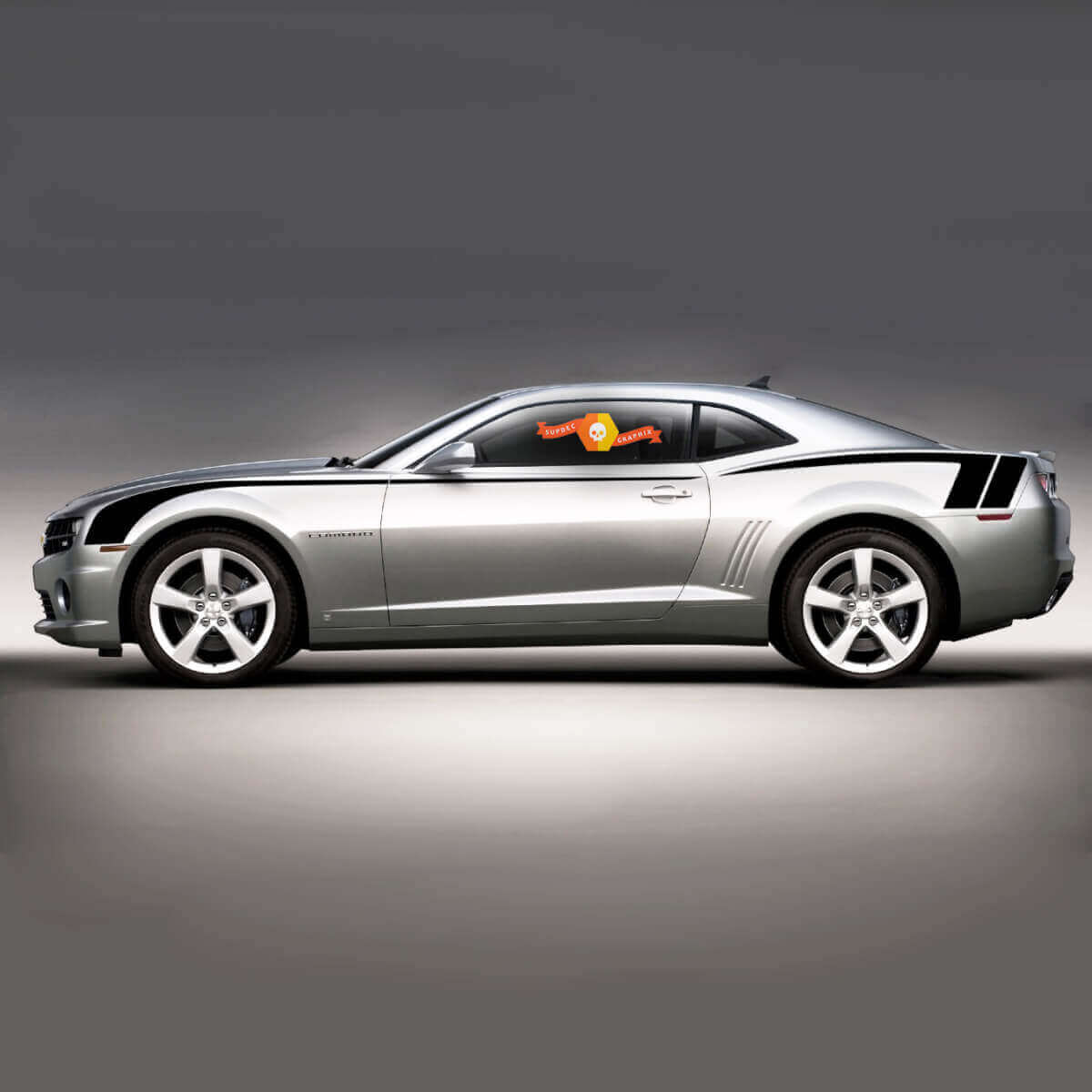 Enhance your Chevrolet Camaro 2010-2015 with our Side Hockey W Copo Style Stripes vinyl decals. Designed to give your car a unique and sporty appearance, these stripes perfectly complement the Camaro’s aggressive style.
