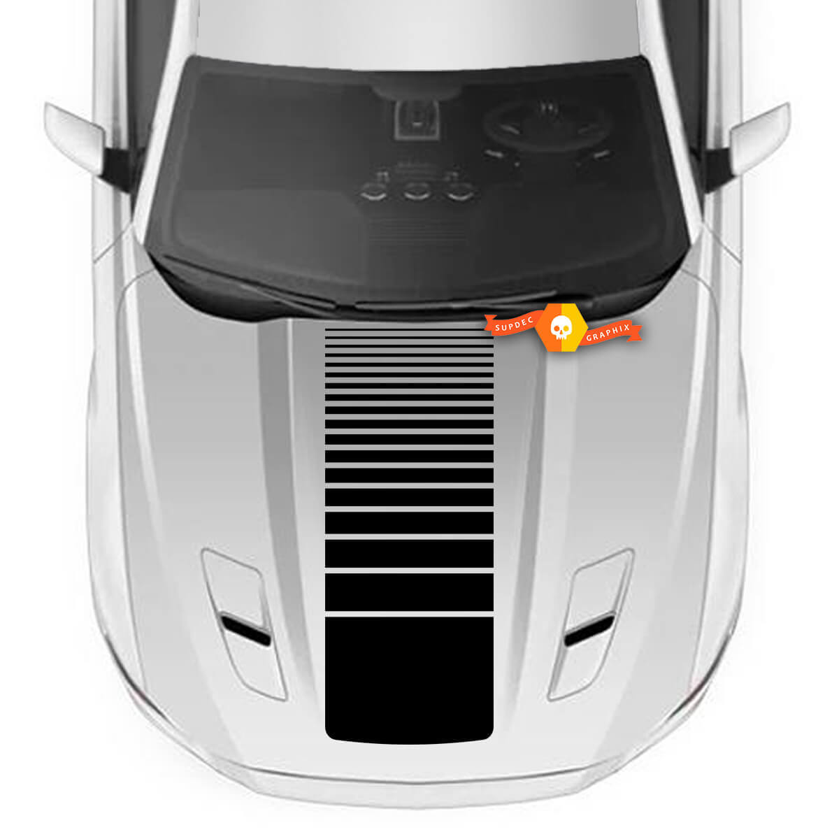 Give your Ford Mustang a striking new look with our Hood Strobe Accent Decal Sticker. Designed specifically for Mustang enthusiasts, this vinyl decal adds a sleek, modern touch to your bonnet with a unique strobe effect.