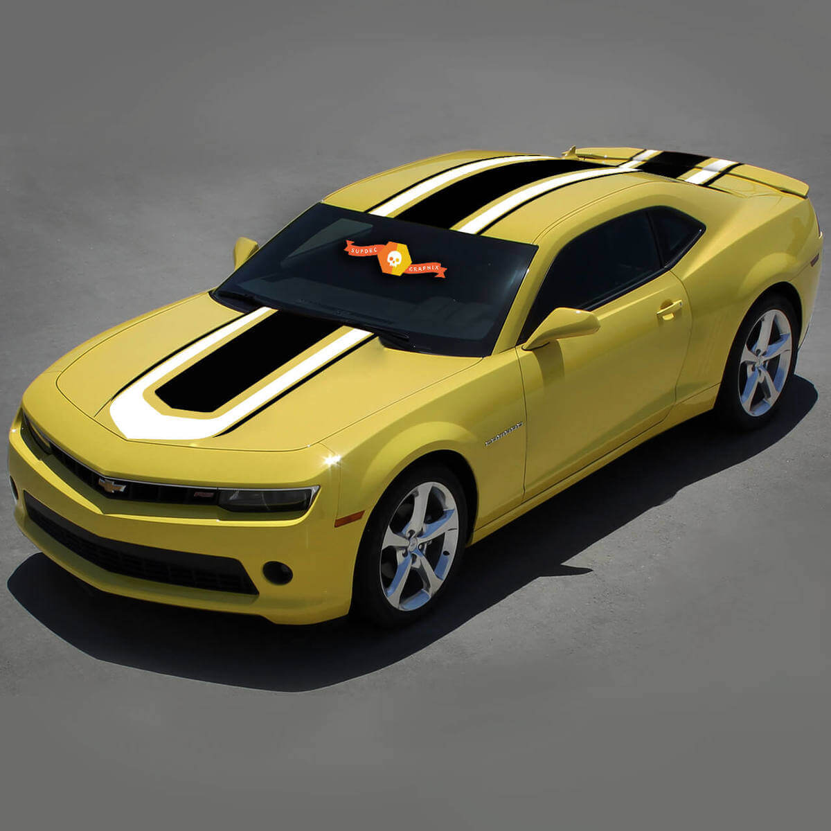 The stickers are waterproof, protected from UV rays and can be easily removed without damaging the car body. The kit includes long wide stripes that are applied to the centre of the bonnet, giving your sporty Camaro a spectacular and dynamic look.