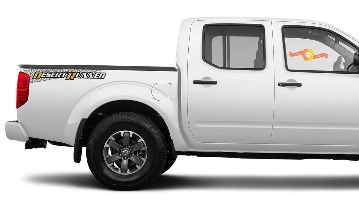 Enhance your Nissan truck with this pair of Desert Runner vinyl bed side stripes. Designed to give your vehicle a rugged and stylish look, these decals are perfect for Nissan truck enthusiasts.