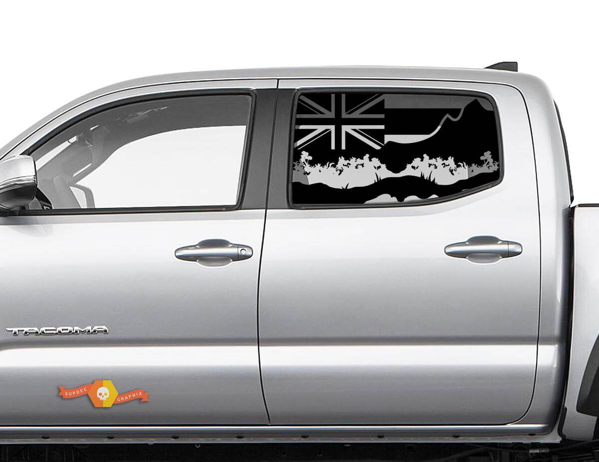 Add a tropical vibe to your vehicle with the Hawaii Palm Mountains Flag Windscreen Vinyl Sticker Decal. This durable vinyl decal is designed to withstand the elements while showcasing your love for Hawaii’s iconic palm trees and mountain landscapes, combined with the state flag.